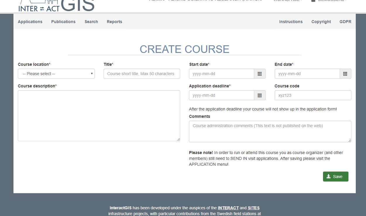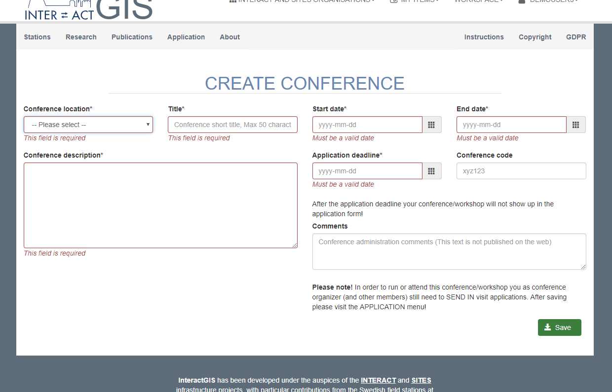 The INTERACT GIS Sign-up menu may also be used for assigning a PI-account to any public user, which will facilitate for PI’s to apply for permission to visit and perform activities at field-stations (perhaps after having identified a suitable station based on catalogue information). Receiving and administrating PI-applications require stations to enter “Active level of usage” in INTERACT GIS, which may be easily switched on and off once the station is fully connected. If a station is switched off from active user-mode, it won’t be visible for applicant PI’s. At the active level of usage, stations start to accumulate information regarding activities related to research, monitoring, conferencing, and educational activities, including personal information regarding visitors that is highly liable to GDPR. Hence, in active usage, personal information is processed and operational costs are charged.